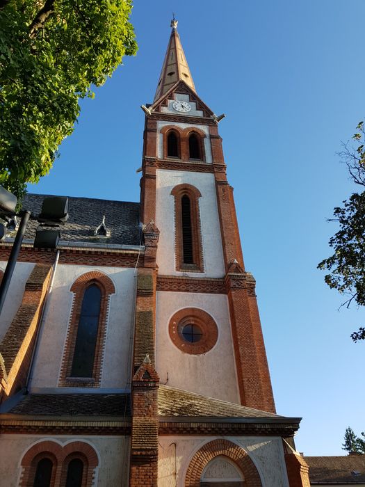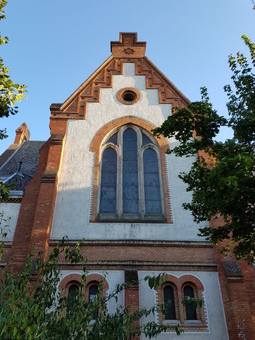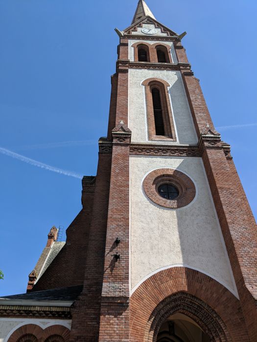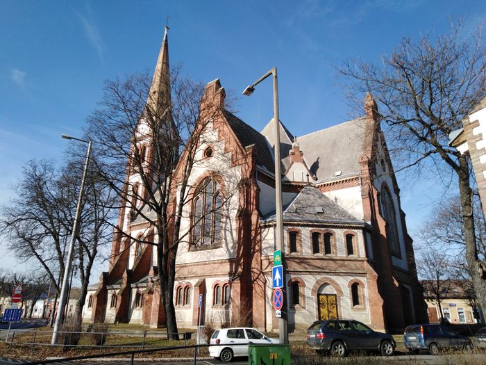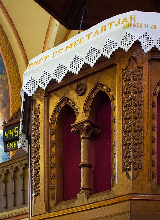 The Reformed Church parish in Debrecen is one of the most prominent Reformed churches in Central Europe, built of red brick in 1887 in neo-Gothic style by István Szompathy and his wife Zsuzsanna Veresmarty to a design by Samu Pitz Petz), and is notable for its ornate interiors of Protestant churches painted by Jenő Haranghy in 1937.