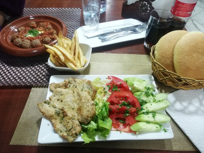 There are local popular restaurants that provide delicious traditional dishes for individual and group customers, locals and tourists in the city of Tangier, as is the case in the restaurant “Shahiwat Le Couple”, where they can order meals from meatballs with eggs, Moroccan couscous with boiled vegetables, grilled chicken breast slices With fresh vegetables, hot lentil tagine, and other options served with hot drinks such as tea and Arabic coffee.