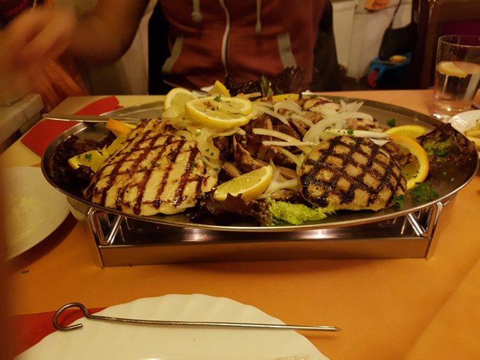 visit to Delphi Restaurant will take you on a special trip to Greece, as it enjoys a warm atmosphere and decorations inspired by ancient Greek myths, and a stone gate similar to those of Greek castles leads to it, in addition to serving delicious and selected foods such as gyros, tomato soup, moussaka, dolmas, and roast lamb With herbs and meat skewers of all kinds, served with bread, vegetables, yogurt and more.