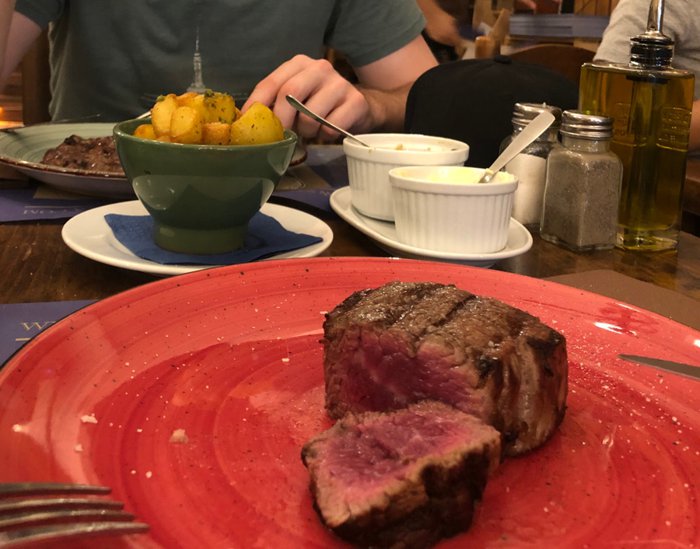 El Gaucho Restaurant provides grilled meat dishes, which are served with salads and fried or mashed potatoes, including lamb ribs, sausages, lamb chops, chicken, and many others, which people can eat in the restaurant's inner hall, on comfortable seats.