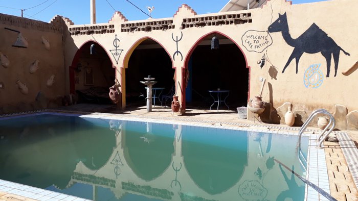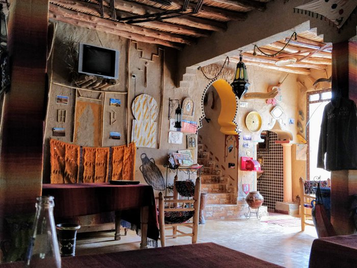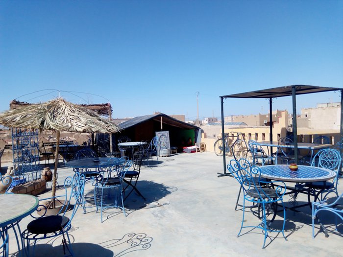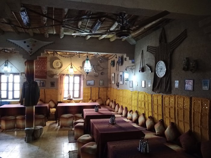 Fatima Moroccan Restaurant is distinguished by its wonderful traditional décor, which makes the place environment comfortable and inviting to relax. It is one of the restaurants that have been in the city for decades, and over the years it has been visited by tens of thousands of tourists coming to the Merzouga desert. It still enjoys a large number of visitors for many reasons, including that its dishes are delicious and prepared from fresh ingredients of high quality, and because its prices are not exorbitant and suit everyone. Among the dishes it serves are steak, chicken with fried dough, chicken soup, and many other delicious dishes.