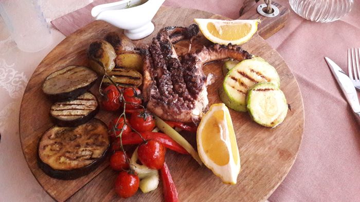 Grand Restaurant is located in the center of Ulcinj. It has an outdoor terrace that allows you to enjoy local and international dishes in the open air. It is an ideal place for couples and families who want to enjoy a private atmosphere and a large variety of delicious meals, such as fried seafood, and various fish cooked in the style of your choice, grilled steaks served with sauteed vegetables, and many other fresh and high quality items.