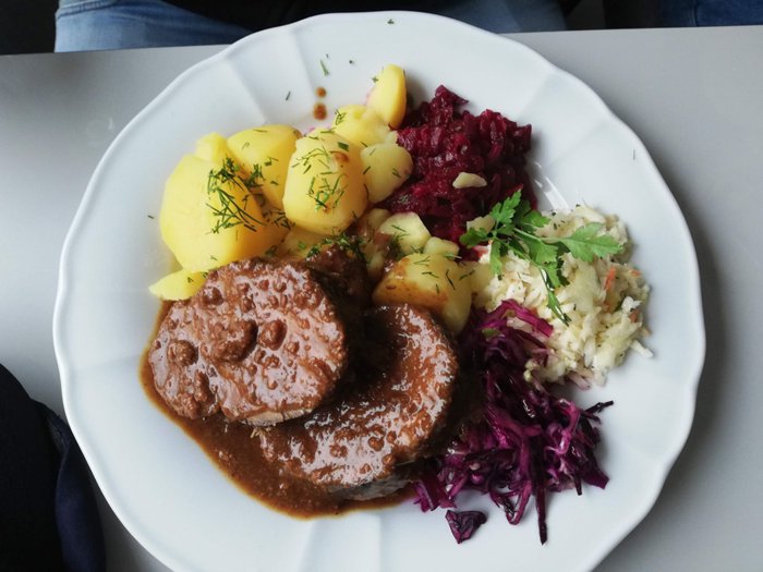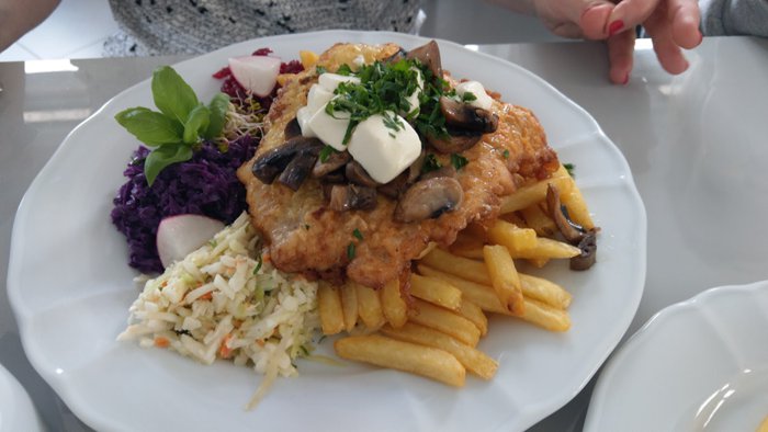 Karolinka Restaurant is located near the city center, and enjoys its large windows overlooking the city's lively streets, and has modern décor that is decorated with pictures of the archaeological sites of Malbork. Its menu includes a lot of food such as Polish dumplings, grilled lamb and meat cuts served with grilled potatoes, some types of pizza, pasta, grilled fresh fish and others.