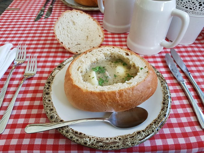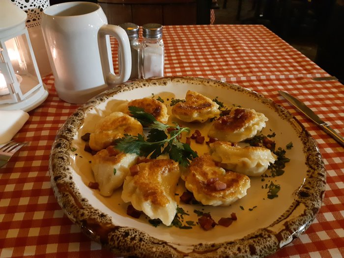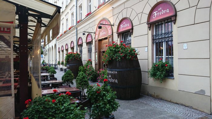 Pod Fredro Restaurant has comfortable décor in a distinctive rustic style with wooden tables and an atmosphere filled with live music. Its menu includes a lot of Polish food prepared according to traditional cooking recipes such as dumplings, smoked fish, grilled meat rolls with potatoes and delicious soup served in an innovative dish of freshly baked bread. This is in addition to a large selection of appetizers and a variety of refreshing drinks.