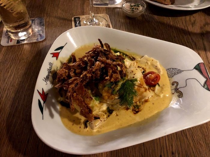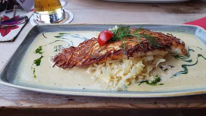 Strandhall Restaurant is located at the end of the promenade facing Binz Beach on the island of Rügen. It is characterized by its fast service, reasonable prices and friendly staff. Although its menu is small, it includes something to satisfy all tastes, as it varies between fresh seafood and authentic German and European dishes including celery soup, roasted cod, roasted potatoes with rosemary, grilled salmon fillet, seafood in lemon garlic sauce, and many more.