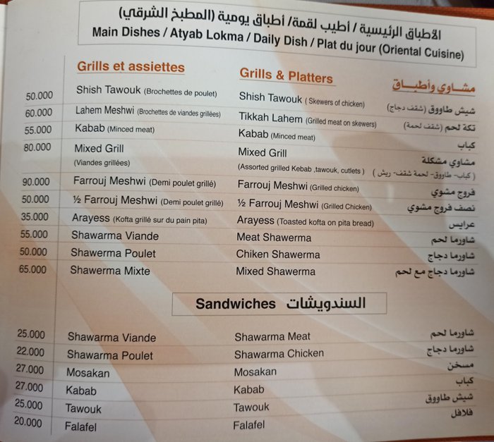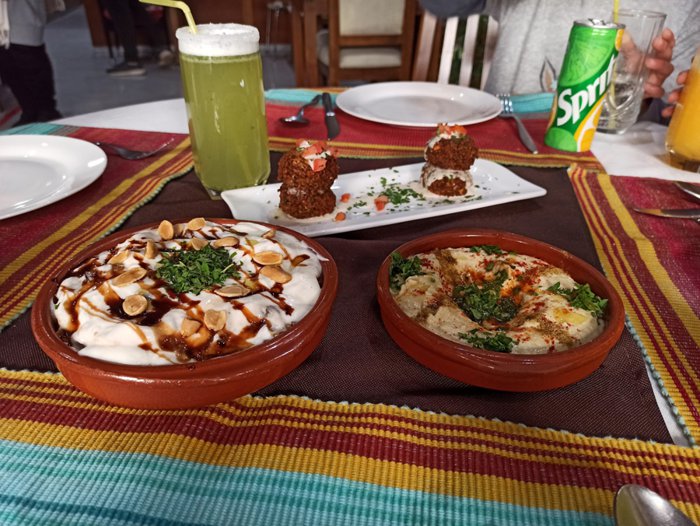 Unique oriental dishes, from the options of the Levantine cuisine, are available at Sofra Restaurant, including fried falafel, the Palestinian maqlouba dish, stuffed with all kinds of stuffed eggplant, zucchini, tomatoes, potatoes, etc., in addition to grape leaves rolls that are served as appetizers, and a variety of delicious desserts, including kunafa and pudding. And many more, which customers can order while sitting on the comfortable indoor seats.