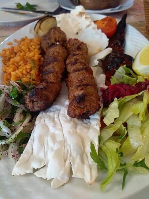 Turkish restaurant located near the city center of Brasov. It specializes in serving Turkish, Middle Eastern, and other dishes suitable for vegetarians. It also specializes in preparing lunches, dinners, as well as coffee and drinks. The restaurant is suitable for groups, whether friends or families, you can eat Outside the restaurant in the open air, and most importantly, it is characterized by good prices for dishes, its dishes are characterized by a very delicious Turkish flavor, among the dishes that it prepares: traditional Turkish dishes, tantouni, grilled chicken, beef and lamb dishes are all halal, salads of all kinds, such as parsley salad, Onion and rice salad, eggplant salad, and as a dessert, he prepares many Turkish sweets, such as kunafa, baklava, and also Turkish tea and coffee. Among the services he provides is that he accepts advance reservations and provides delivery service.
