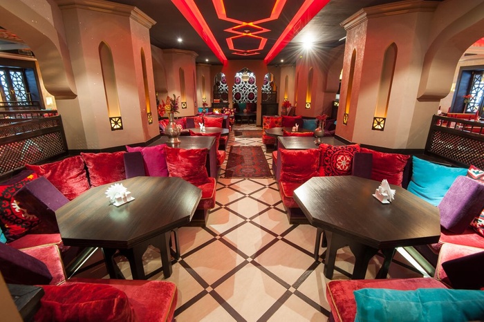 Middle Eastern Arabic restaurant that is distinguished by its beautiful, modern Arabic décor, and its wonderful details that make you feel that you have moved to the Arab world. The restaurant menu includes many famous Middle Eastern dishes such as kebabs, shish tawook, bean soup, falafel, lamb liver, kibbeh, arayes, and hummus with minced meat, in addition to appetizers such as hummus, muttabal, and samosas, and salads such as tabbouleh and fattoush salad. In addition to international meals such as pasta, pizza, etc., and desserts such as baklava, Turkish delight, and Turkish tea and coffee. You can also smoke hookah in this wonderful restaurant, and watch live belly dancing shows.
