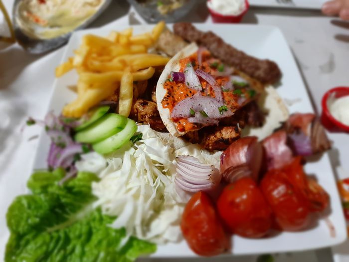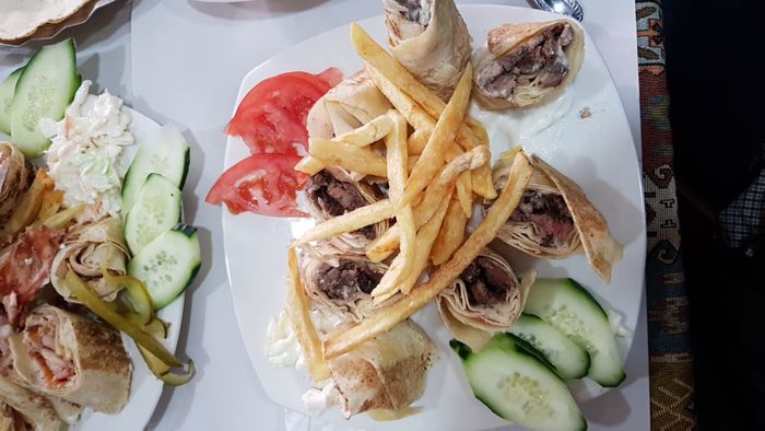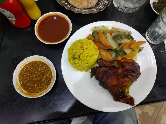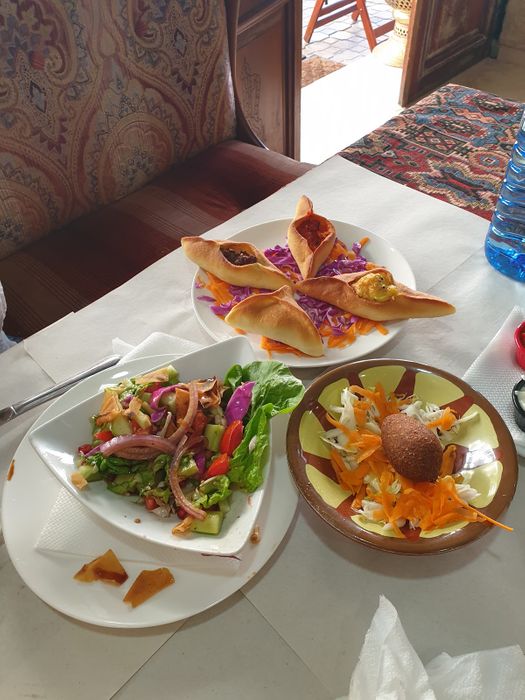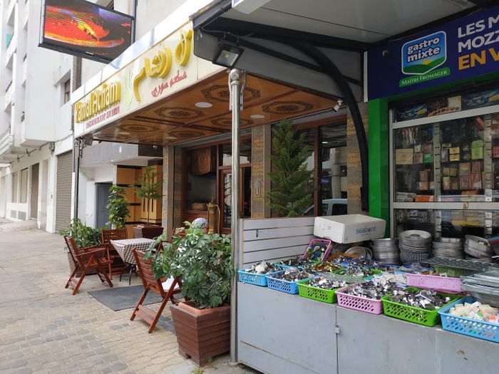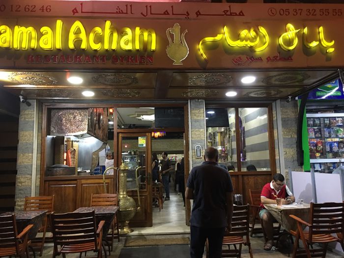 Syrian restaurant in the heart of the Moroccan city of Kenitra. It is distinguished by its wonderful decoration in the style of Aleppian houses. There are windows in the shape of horseshoes, white and gray striped walls, and Bedouin Arab sofas. Traditional Syrian copper utensils are used to serve dishes. The restaurant is supervised by a Syrian immigrant who prepares all dishes using traditional methods. Among the dishes it offers there are mezze such as kibbeh and sfiha with meat, falafel and hummus, and main dishes such as grills of all kinds and hawawshi, and desserts such as harissa and namoura, and many others.
