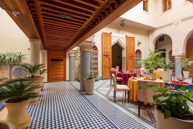Riad El Nightingale Restaurant is a restaurant ranked first by the Moroccan Ministry of Tourism, and it is part of a newly renovated, upscale guest house, which has many advantages, the first of which is its ideal location, as well as the fact that it provides luxurious accommodation, excellent facilities, in addition to having a small swimming pool , two halls, a cafe and a restaurant, as well as it includes a wide patio with a central fountain, and the restaurant offers many delicious dishes that suit all tastes, such as pastilla, meat tagine, brochettes, and many other delicious dishes.