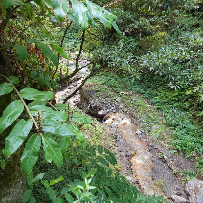 Ribeira Kente Waterfall is a picturesque thermal waterfall located in the village of Ribeira Kente on the island of São Miguel, and its waters are characterized by specific characteristics in terms of chemical composition. This waterfall is reached through a narrow tunnel, so it is advised to park the car far from the area and go on foot.