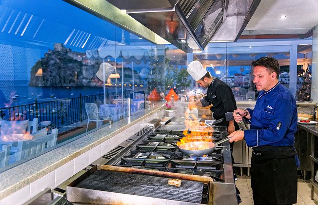 La Lampara Restaurant is a distinctive restaurant with its lively modern décor that reflects the atmosphere of the sea and the beach, through its white chairs with beautiful patterns, placed on the large outdoor terrace of the restaurant, where customers sit and enjoy eating one of the unique dishes included in the menu, including spaghetti with seafood , octopus soup with cream and mushrooms, mussels with lemon and garlic, and many more.