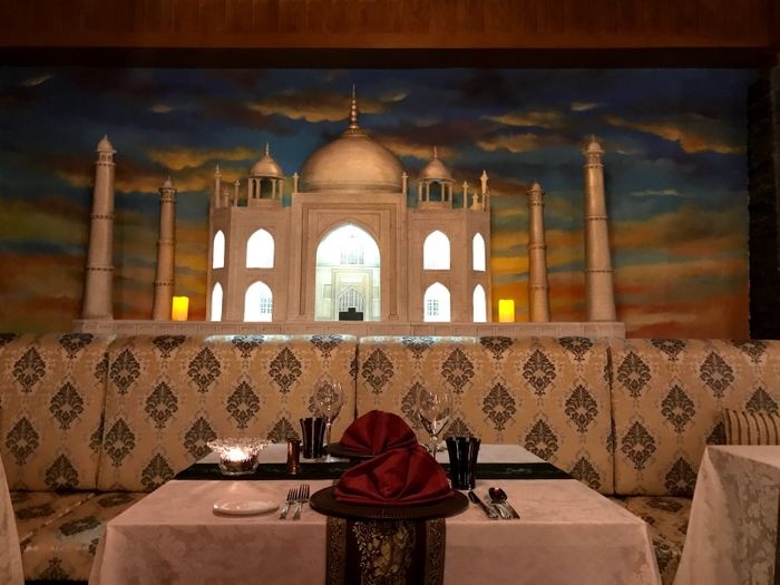 beautiful restaurant with luxurious decor inspired by the famous Indian style, distinguished by its bold and lively colors and its simple and comfortable designs. The restaurant offers a wide variety of Indian dishes prepared in the traditional way. Which is distinguished by its elegant way of decorating and serving it to guests, and among these dishes are biryani rice with roasted meat, tandoori chicken, Indian edamame, chicken curry, in addition to some desserts and cold drinks.