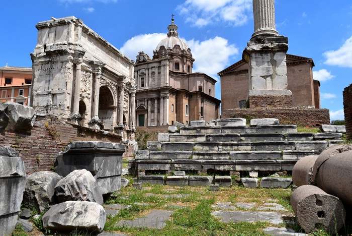 The Roman Forum in Rome is a rectangular square located in the heart of ancient Rome, between the Palatine and Capitoline hills. The Forum was the center of important buildings, popular ceremonies, government elections, and a center for public speeches and public trials. It was also the heart of Roman trade and economic life. It is believed that the Roman Forum was the most famous meeting place in history, due to the many statues that commemorate the ancient Roman men. Now it is one of the most important archaeological attractions in Rome.