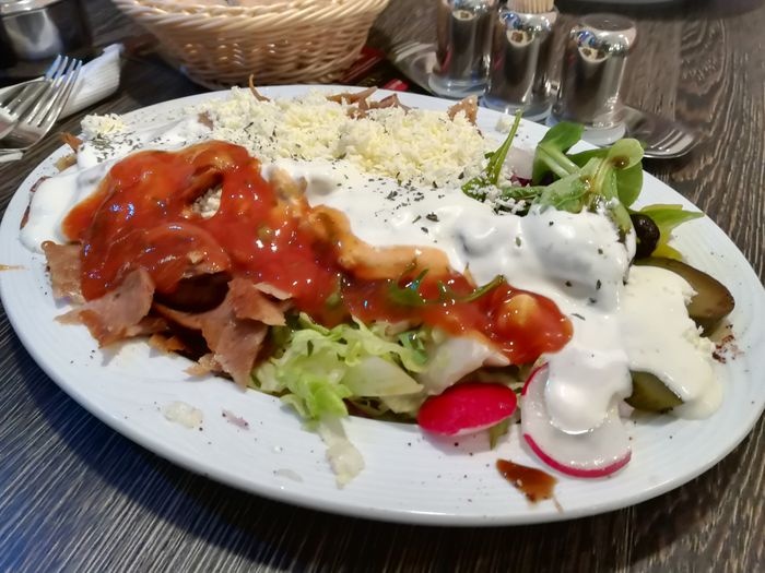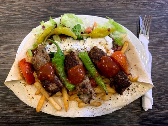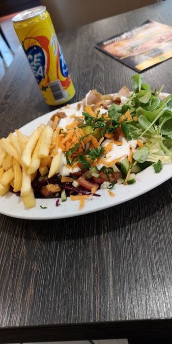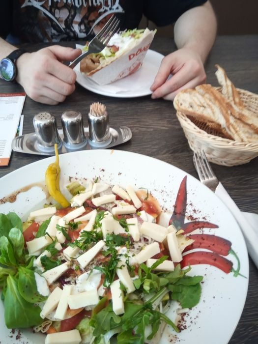 restaurant that specializes in serving the famous doner sandwiches in Germany, and it is the most popular meal in Germany at the present time. This meal is served in the form of sandwiches prepared with Turkish bread, and served with fried potatoes and various kinds of salads. As all ingredients are displayed fresh in front of the customer to choose from, such as salads, pickles, meat, and bread, the menu also includes a group of cold drinks such as natural juices, soft drinks, and Italian soda.