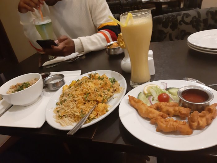 The decorations of this restaurant impress all its visitors, as it was designed in the style of the Indian and Pakistani royal palaces, and visitors will find arches, ornate columns, and luxurious furniture. The restaurant is also characterized by its spaciousness, and it is possible to spend a nice time in the company of large groups of individuals. The decorations in the place are reflected in the dishes served, as the dishes are all Pakistani and Indian. Among the dishes he serves on the menu are kebab skewers, shish tawook, stuffed mushrooms, tandoori chicken and many more.