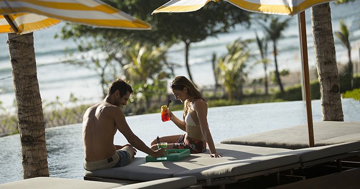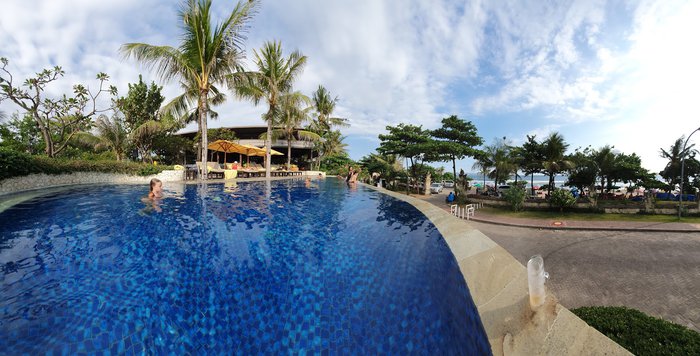 Sky Beach Club, located in Legian Beach, is an elegant and comfortable social center for visitors of all ages. It has a beautiful swimming pool, stunning sea views, and serves a delicious menu of international dishes.