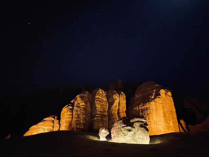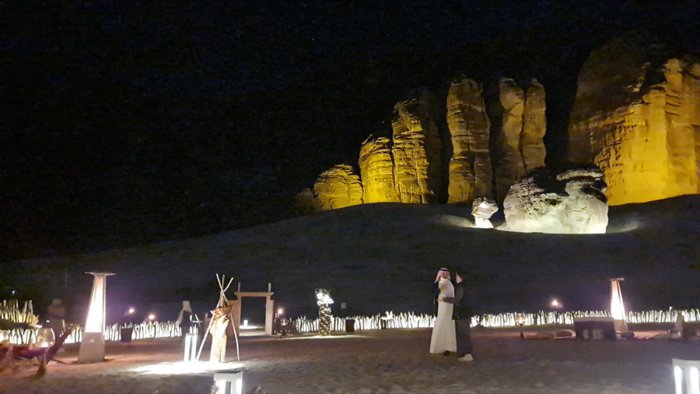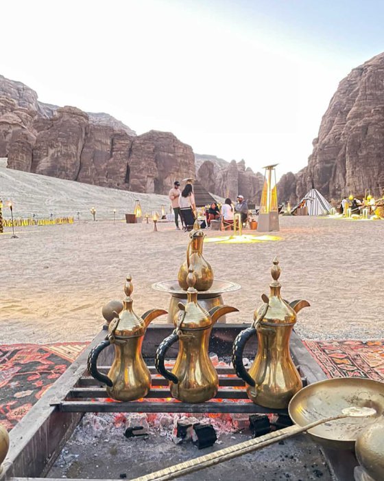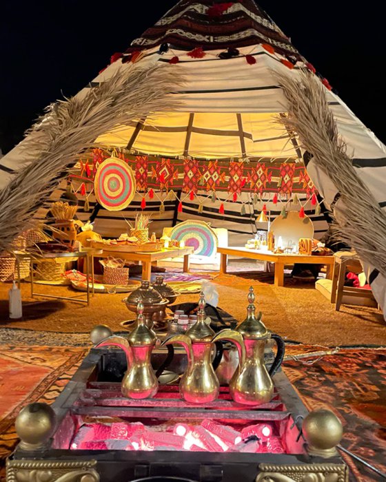 One of the most important destinations where health activities can be practiced in Al-Ula is the Al-Sadu outlet, which is located at the foot of the mountain in an isolated area of rocks and sand mixed with the surrounding terrain. In the tent, you can play a game of chess with a friend, enjoy fine drinks or foods, watch the starry sky, or warm yourself by the fire.