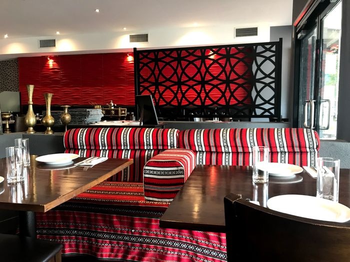 An oriental restaurant, it has decorations inspired by the ancient Arab heritage, with the presence of Bedouin councils, and it is distinguished by its comfortable and enjoyable atmosphere, which is suitable for families and groups. As for food, this restaurant offers a wide variety of various Arab foods, including appetizers, such as grape leaves, falafel, samosas, calamari, salads, including tabbouleh, fattoush, and Greek salad, and main dishes, such as grills, which include shish tawook, kebabs, And chicken tagine, kofta, grilled Atlantic salmon with vegetable ragu sauce, and more, in addition to desserts, including cheesecake, baklava, and sorbet ice cream.