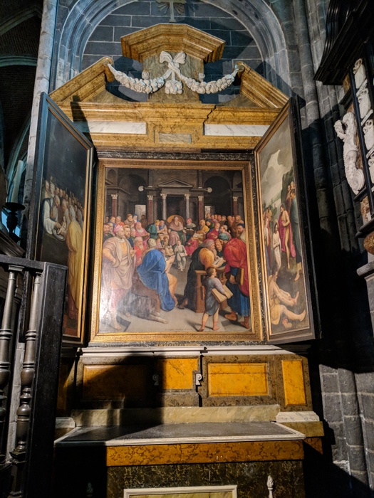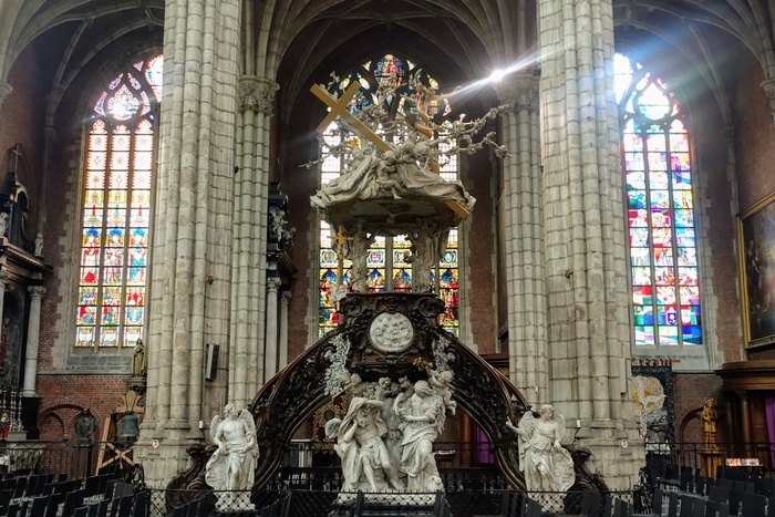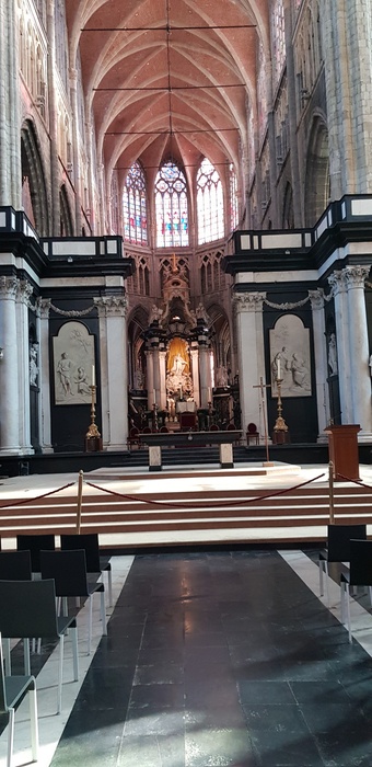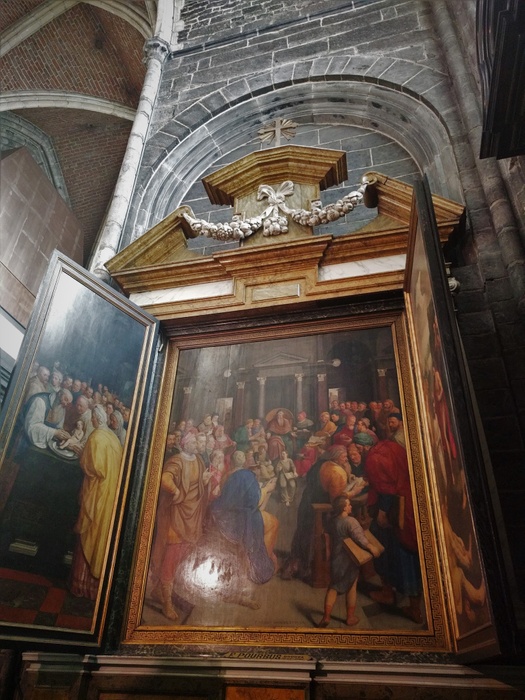 Saint Bavo's Cathedral (also known as Sint-Baves Cathedral) is the 89-meter-long Gothic cathedral in the city of Ghent, the seat of the Diocese of Ghent. By Van Eyck, the place was initially a wooden building built in 942 by the Bishop of Tournai and Noyon and named Transmarus, but the foundations of the current building were laid in 1274.