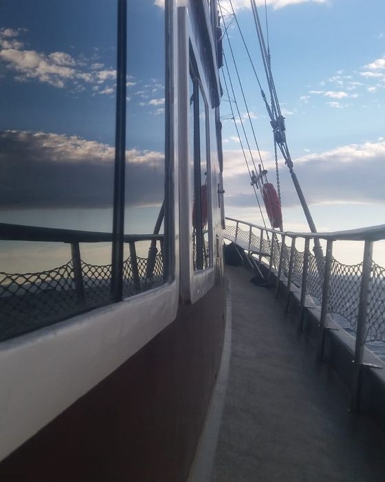 traditional yacht, specializing in alternative daily boat cruises. This yacht is distinguished from other daily tour boats by its use of sails, and its total dependence on the movement of air on the way back, rather than the engine, which increases the calmness of the trip, as this trip is considered a suitable experience for all those looking for peace and tranquility, so this yacht is distinguished Not crowded with people, or playing loud music. It also provides an open lunch buffet, which includes fresh and delicious grilled meals.