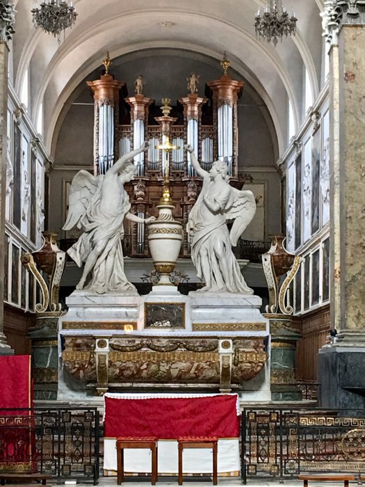 The Church of Saint-Pierre de Chartreux is located near Saint-Pierre Square in the city of Toulouse, and its name goes back to the Carthusian monks who built it at the beginning of the seventeenth century. It is made of marble and decorated with a wonderful carving depicting angels crowning the Blessed Sacrament created by the famous Toulouse sculptor François Lucas in 1785.