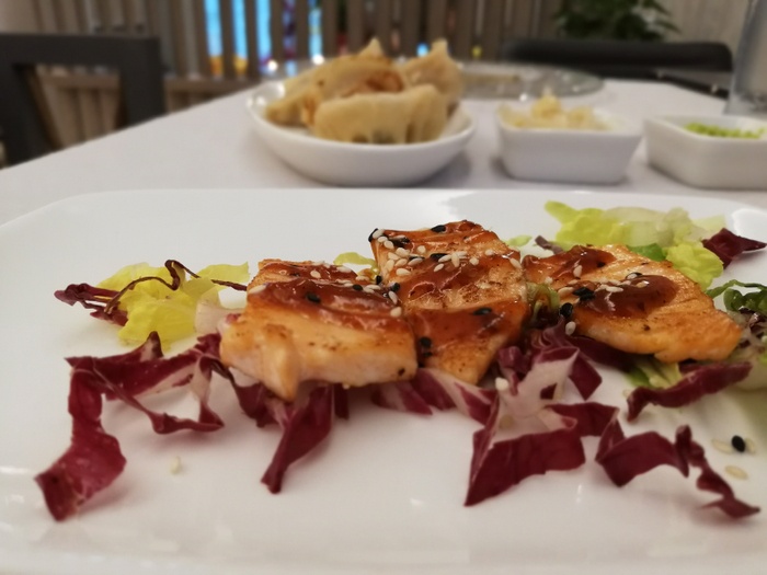 An Asian restaurant that serves delicious Chinese and Japanese cuisine in a modern and elegant way. The menu includes a range of dishes such as sushi of all kinds, a sashimi dish, a Japanese tempura dish that consists of fried vegetables, and a dish of steamed dumplings. It also serves a sesame chicken dish with soy sauce, and a fish dish. Salmon, and other dishes prepared from fresh fish and local ingredients of high quality.