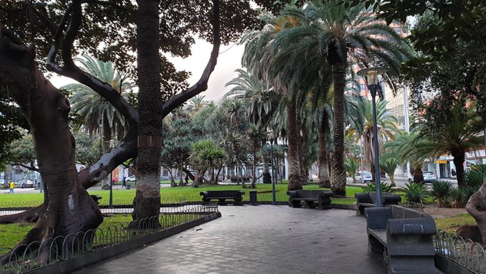 San Telmo Park is a beautiful little shaded area next to the old town of Las Palmas and the main bus station. This park includes a cafeteria in an ornate art nouveau kiosk, a playground that delights families and children with a pirate ship, and near it there is an old church, and around it are cobbled streets with cafes Nice and varied shops.