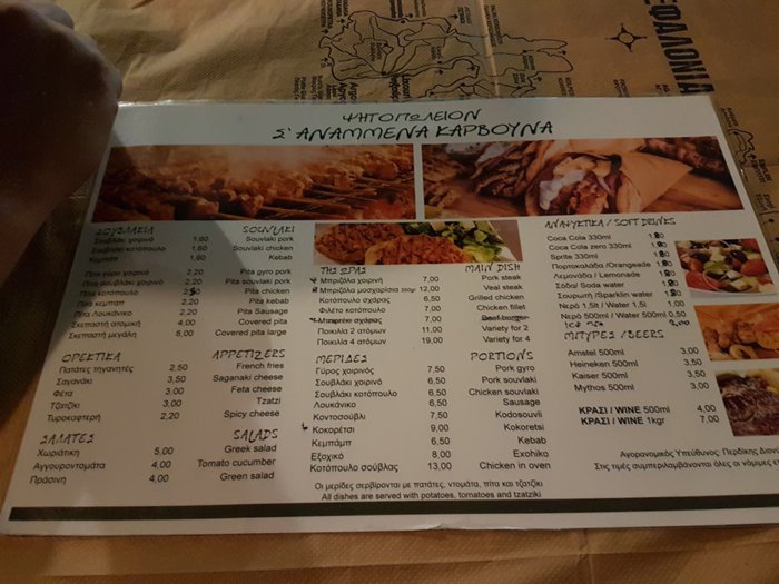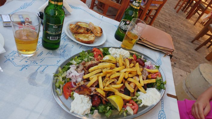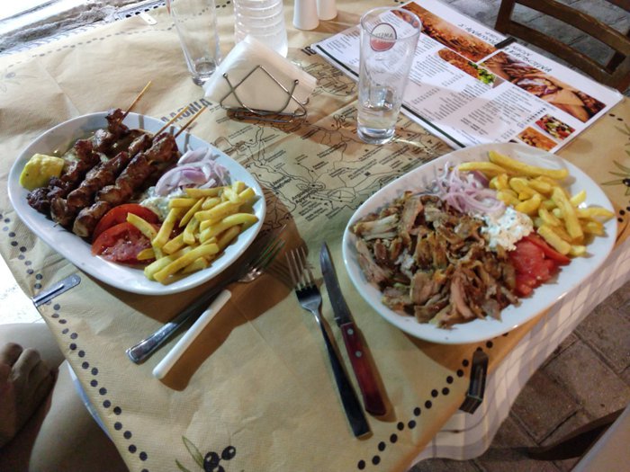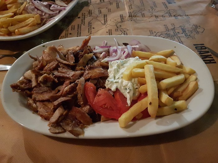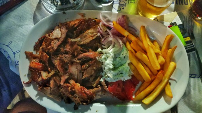 Tourists and locals come in large numbers to the Sanamina Capiona restaurant specifically in order to eat the famous Greek gyro with the Greek salad, whose fame has gone beyond the borders of Greece and its islands to reach all international cuisines. Customers can order the gyro in the form of a meal served with fried potatoes and various local sauces, or in the form of a sandwich that they can eat outside the restaurant.