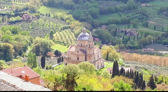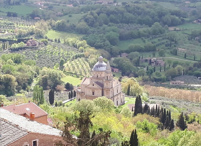 The Abbey of the Madonna di San Biagio is located at the foot of the Montepulciano hill and has a passage lined with tall cypress trees. This church was built by Antonio da Sangallo between 1518 and 1545 and is a 16th-century masterpiece with a view Picturesque on the Italian countryside, the church contains a fresco depicting the Madonna and Child in her lap and Saint Francis.