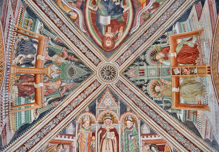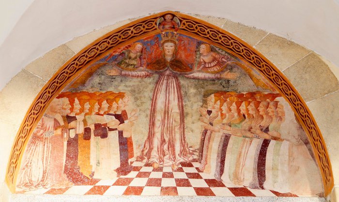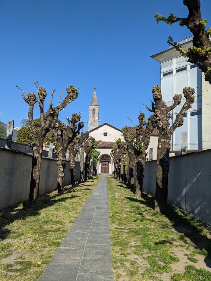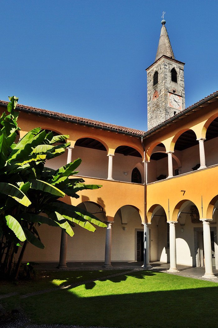 The church of Santa Maria della Misericordia is located in Ascona in the Swiss canton of Ticino. It was built between 1399 AD and 1442 AD, with a distinctive architectural design that includes spacious courtyards and towers. The construction of the tall tower dates back to 1488 AD. It is set in late Gothic Switzerland.