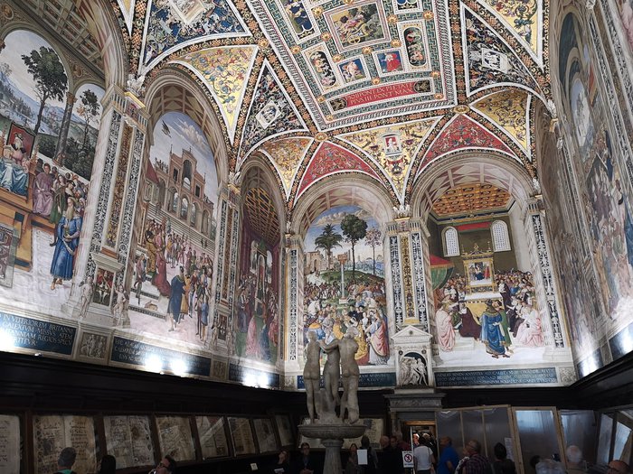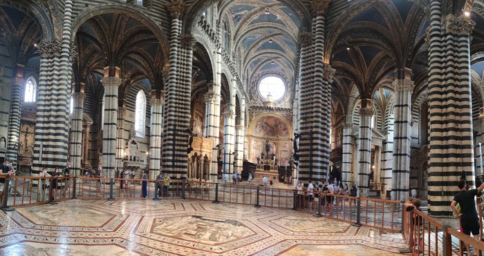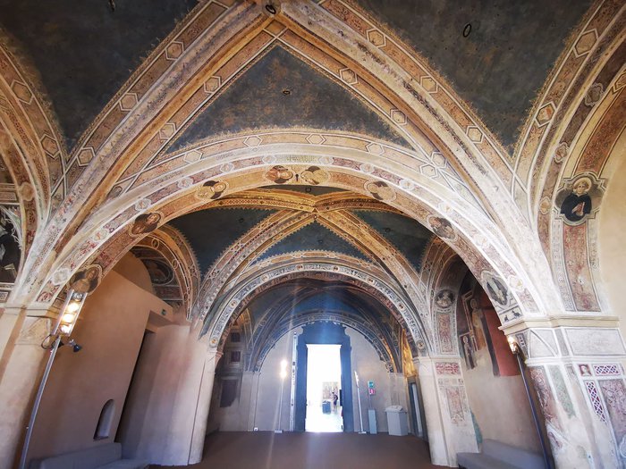 The complex of Santa Maria della Scala, located in the city square and in front of the cathedral, was previously a hospital from the Middle Ages and the thirteenth century AD, and it is one of the oldest European buildings of this type, and it has a facade of marble lines in black and white, and it also embraces a group of works from Etruscan and Roman Art from the Middle Ages to the Renaissance.