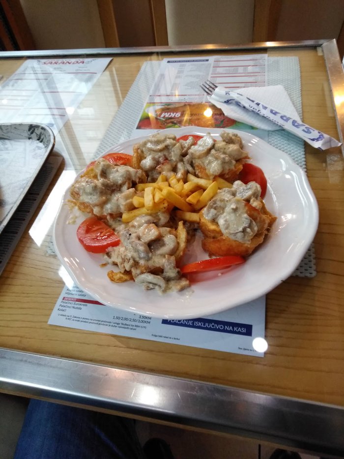 Saranda Restaurant is located in the city of Tuzla and consists of two main sections, one of which serves cakes, coffee and distinctive Bosnian sweets, while the other section is a regular restaurant with a large variety of local and international foods, and Italian pizza here is the most popular option.