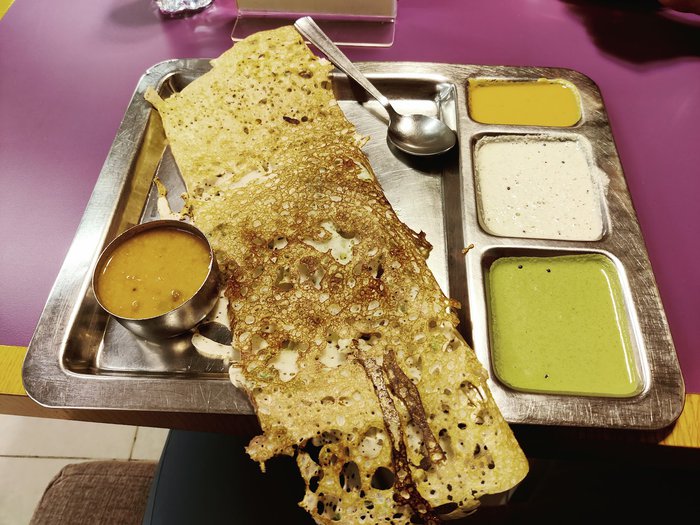 Saravana Bhavan Restaurant is famous for serving the most delicious Indian vegetarian dishes, along with the distinctive dosa bread, and enjoys a comfortable atmosphere ideal for dining with families or friends, as well as its wonderful service and reasonable prices.