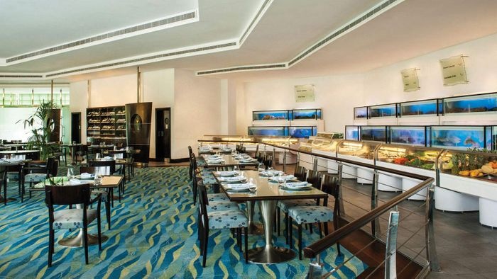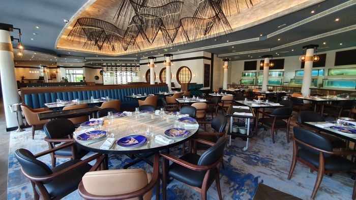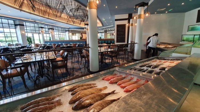 This restaurant offers a wide range of options, where the visitor chooses what he wants from live seafood and then hands his choice to the chef to start cooking. With delicious mashed potatoes and vegetable salad flavored with hot sauce, and many other delicious dishes, it also serves delicious varieties of live seafood such as delicious red mullet, delicious crab with hot pepper sauce, and many other delicious meals. Suitable for vegetarians, as it offers a special menu for the best vegetarian dishes, such as a delicious crispy pasta dish with fresh vegetables, and many other delicious vegetarian dishes. It also offers a varied list of soft soft drinks, and excellent refreshing drinks, in addition to that it is located in the restaurant A large fountain in the shape of a fish, and the entrance floor is glass, as the blue decorations increase the beauty of the restaurant.