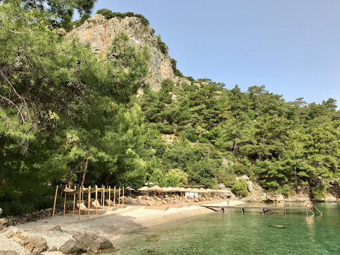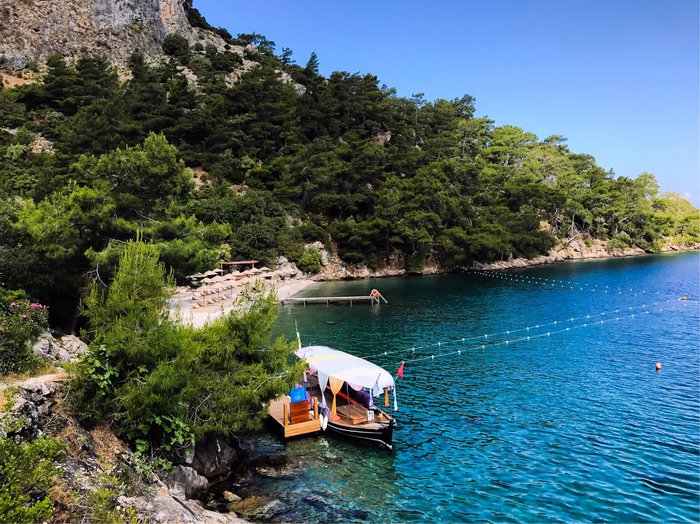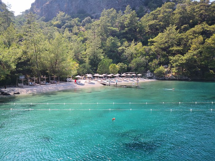 Serenity Beach provides Fethiye visitors and tourists with opportunities to spend one of the most beautiful summer holidays, as it contains everything that makes you spend a happy day. The beach extends for 2 km with beautiful white sand, and offers many activities such as sea boating, canoeing, kayaking, windsurfing, volleyball courts, or even swimming and diving in the depths of the turquoise waters with calm waves.