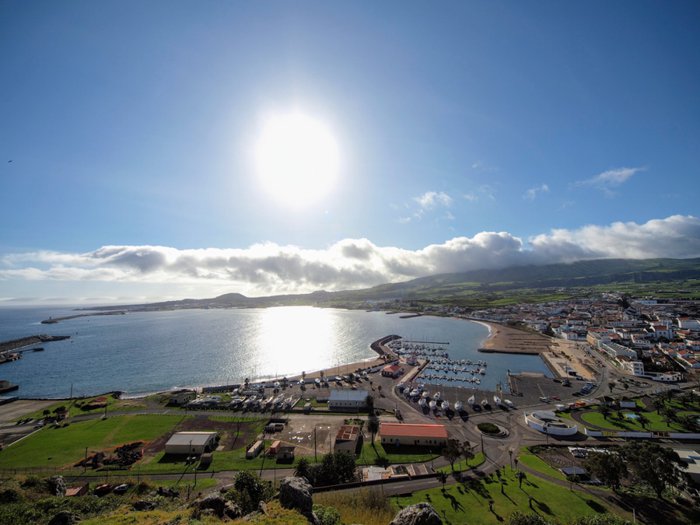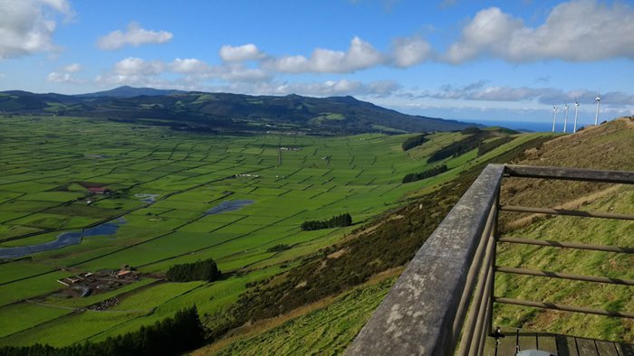 The Serra de Comi Observation Deck is located at 542 meters above sea level on the island of Terceira, and offers its visitors one of the most amazing views of the island and the shore of Victoria Bay on one side and the Azorean fields that look like a patchwork blanket on the other side, and it is also possible to see some small volcanic domes that formed From ancient volcanic eruptions that line a volcanic rift.