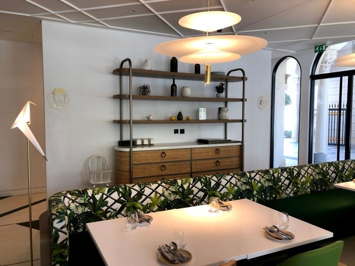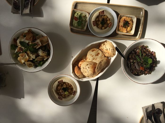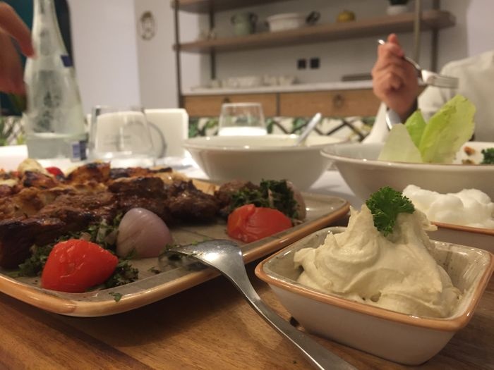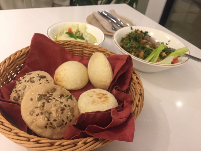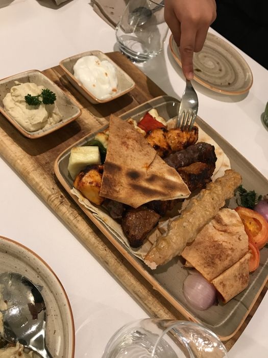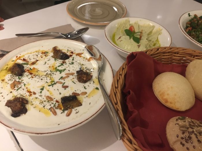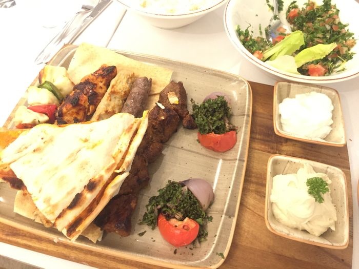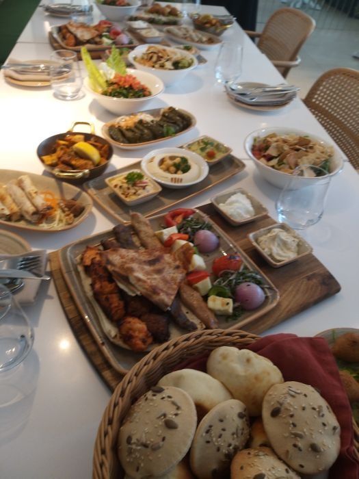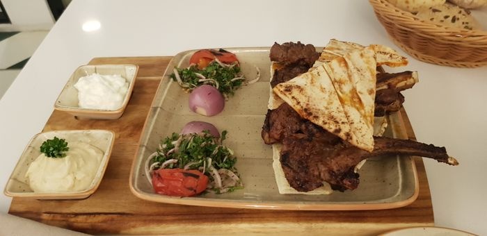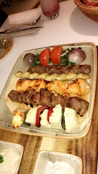 luxurious restaurant with a modern, elegant and beautiful decor. The combination of calm colors of green and white gives the place a special aesthetic and a comfortable environment. The restaurant offers a wide range of delicious Arabic food options such as mixed grills, including kebabs, shish tawook, and feathers. Grilled meals are served with a group of appetizers. And salads such as hummus, labneh, kibbeh, fattoush, tabbouleh, and many others, and certainly the restaurant provides various types of soft drinks and various juices with meals.