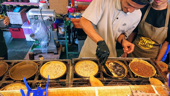 Located just a few steps from the famous PARKROYAL Penang resort, Shahbom Balik station kiosk is famous for its crispy Bom Balik pancake stuffed with peanuts and sweet corn. It also allows you to choose from more than thirty amazing types of fillings ranging from Nutella and chocolate to eggs and cheese. And it is characterized by its low prices that are suitable for everyone.