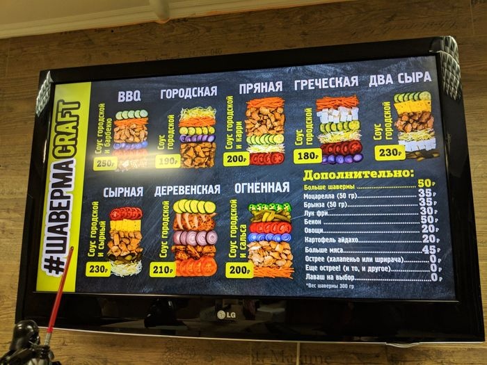 Shawarma Craft Restaurant is famous for preparing the most delicious Middle Eastern shawarma rolls in Murmansk, Russia, and provides customers with a variety of types of shawarma and types of bread that satisfy everyone's tastes, as you can choose meat shawarma served with hummus and tomato and onion salad, and you can also choose chicken shawarma with tahini sauce And pickles, and there is also Greek shawarma served with refreshing and delicious yogurt, and to make its taste more distinctive, you can put it in the toast machine to acquire the crispy texture. This restaurant is distinguished for making fresh shawarma daily, and it also uses high-quality ingredients to provide visitors with an unforgettable taste and taste, in addition to that, its prices are very suitable and reasonable.