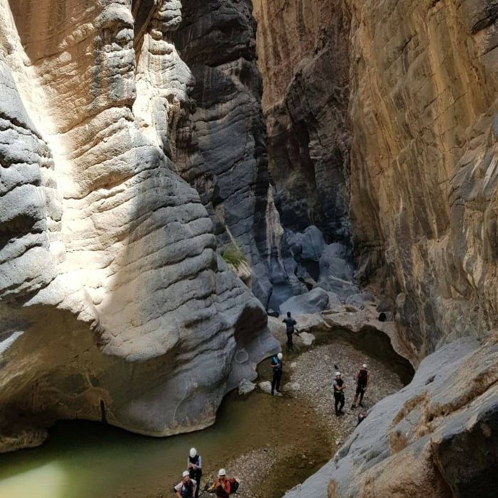 Wadi Snake Gorge, also known as Wadi Boomah, is a gorge or wadi in the Ad Dakhiliyah region of Oman, very popular among hikers and nature lovers. It is part of the greater Wadi Bani Awf region, and is the largest natural water park in Oman. Journey through this large cleft between two mountains which has been cut through flowing water leaving behind smooth and colored rocks with lots of pools of water, the canyon can be up to 30 feet wide and as narrow as 2 feet in some parts, usually takes about 4-5 hours.