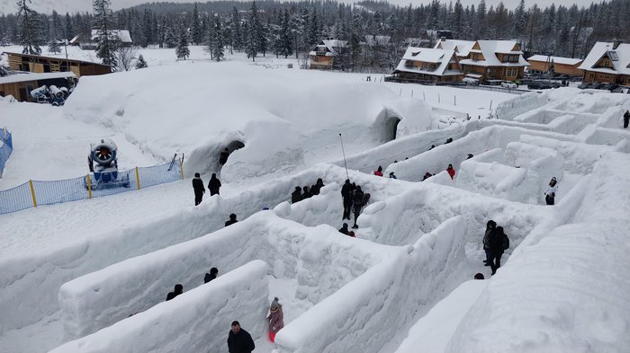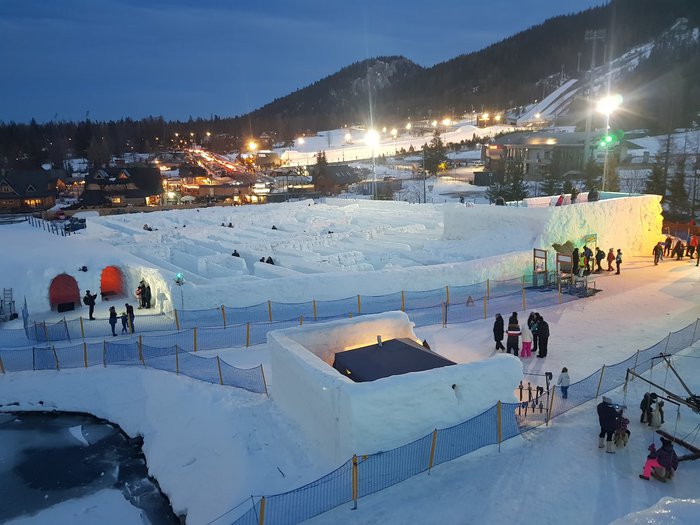 The Snowlandia maze is located near the Tatra National Park, and it is a maze made entirely of artificial snow. It is considered the largest maze in Poland of this type, where you can enjoy an adventurous experience by entering the maze all the way to the exit. Inside the maze there is a castle built of The entire snow is about 14 meters high, where you can enjoy the company of your families and friends and take many photos.