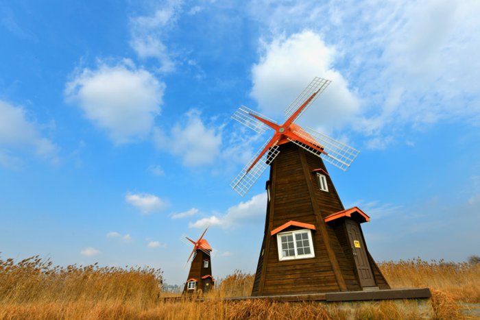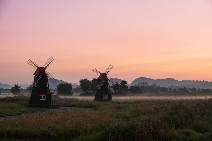 Located in Incheon, Surae Ecological Park was once a salt production facility until 1996 when it was converted into a park. It is characterized by the beauty of its green nature with the presence of water in all parts, and it is a great place to watch and observe the various birds in that region, and there are also hot springs and walking paths to enjoy the beauty of the region. The salt storage places and the windmill are strategic places to take distinctive souvenir photos, and many people visit them in the fall, as many colors appear in them depending on the lighting, which reflects a different kind of beauty to the place.