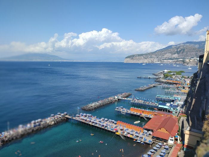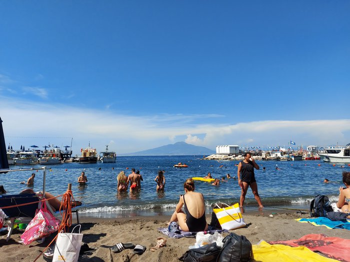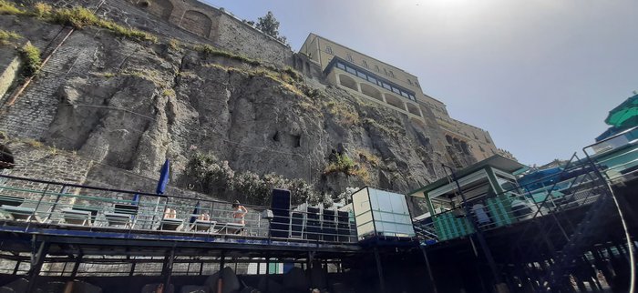 Visitors to Sorrento's public beach, local residents and foreign tourists, can enjoy spending a special and unforgettable time with family or friends. It is ideal for swimming in the clear turquoise waters, sunbathing on dark rocks, lying on comfortable chairs and sofas, and many people like to enjoy eating and drinking in restaurants. located on its front.