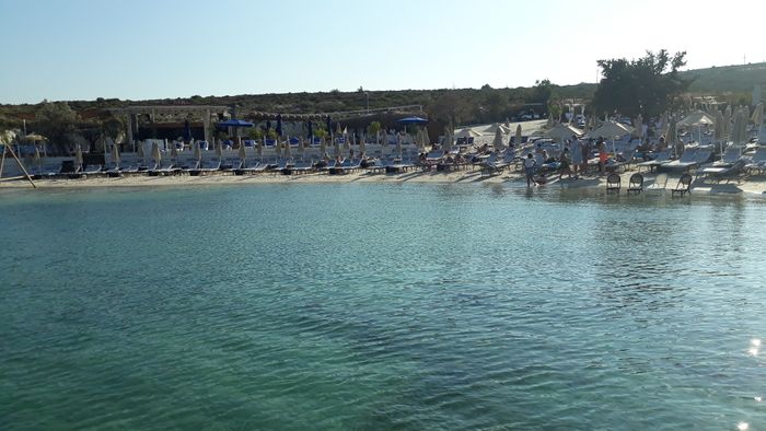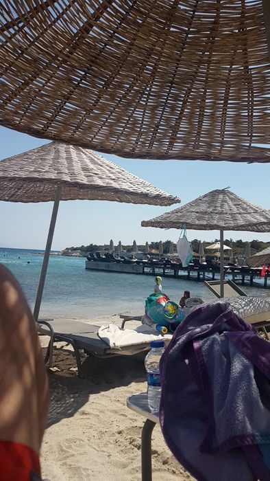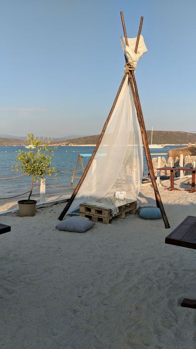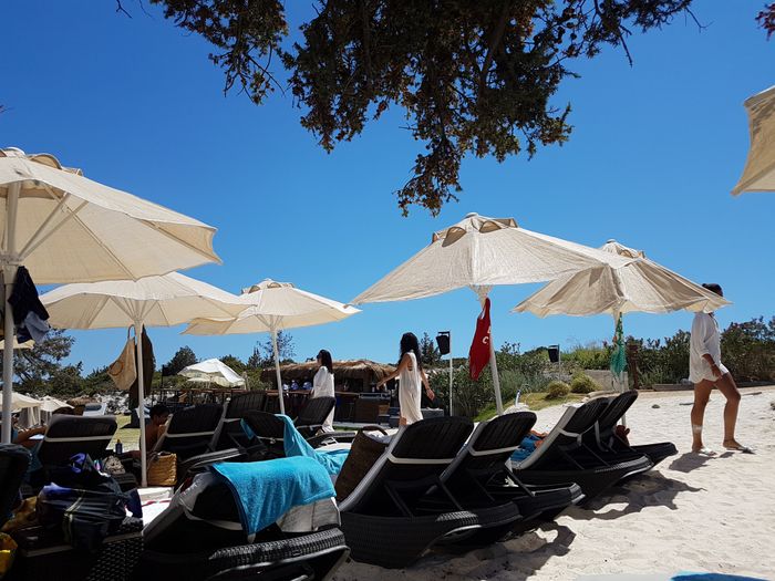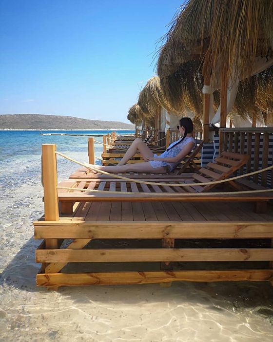 private beach that provides its visitors with a unique opportunity to relax, relax, and enjoy various activities. This beach provides chairs, sun beds, and umbrellas, for an entry fee of 90 TL per person. It also features a special entertainment atmosphere, as this beach hosts DJ music shows throughout the summer months. And to complete your enjoyable and exceptional experience, the restaurant of this beach offers many refreshing drinks and delicious food, which includes Italian pizza dishes, burgers, pita, and others.