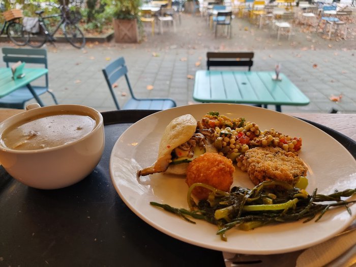 Spirit Rotterdam Restaurant is a local and European restaurant with a modern and warm design and a wonderful atmosphere that includes indoor and outdoor sessions. It serves traditional Dutch breakfasts in addition to a variety of main dishes and desserts. There are suitable options for vegetarians, and there is a children's menu.
