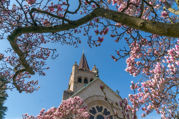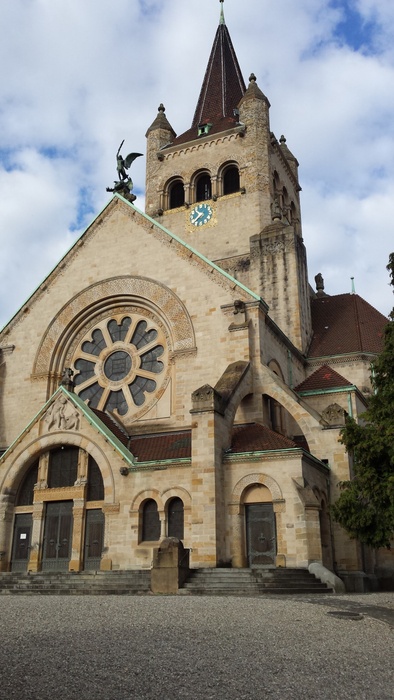 St. Paul's Church (Pauluskirche) is a Swiss Reformed church. It was built between May 1898 and November 1901, by architects Karl Moser and Robert Curjel, and built in the neo-romantic architectural style. It was equipped with a magnificent stone pulpit. The church has high towers, ornate stone windows, numerous statues, stained glass, a lush garden, and stunning frescoes. And you can certainly take a lot of great photos!