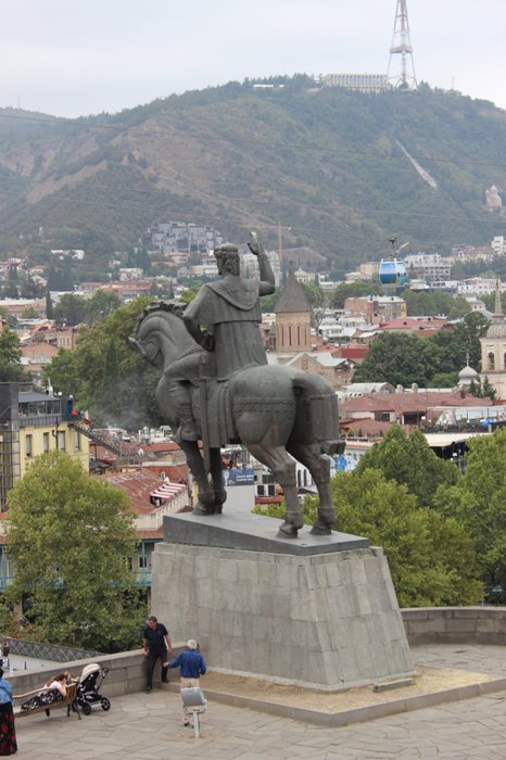 This monument to King Vakhtang Gorgasali is one of the most famous landmarks in the city, as this king is attributed to the founding of the city of Tbilisi, and the real date of this founding was not known, but scholars estimate that it was in the years between 447-522. Many legends are associated with this king, including that the hot springs in the city fascinated him and he founded the city around them. Vakhtang also reorganized the Georgian Orthodox Church, and was therefore canonized by the church.