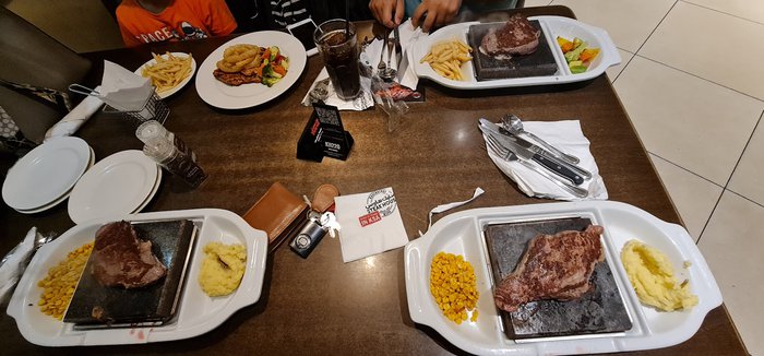 The steak house menu includes many items that customers can eat at different times of the day, as it provides some snacks suitable for breakfast or a break. It also offers international side dishes, main meals from European cuisine, and some fast food that can be enjoyed inside or outside the restaurant.