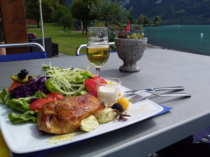 You won't be able to believe the majestic views of Lake Brienz and the vast greenery of the village offered by this restaurant, and the restaurant has beautiful outdoor courtyards and indoor courtyards with huge glass windows that let the bright sunshine into the place. The restaurant serves traditional Swiss dishes, including sausage and cheese fondue, and a delicious rosti dish. It also offers some French dishes such as cordon bleu.